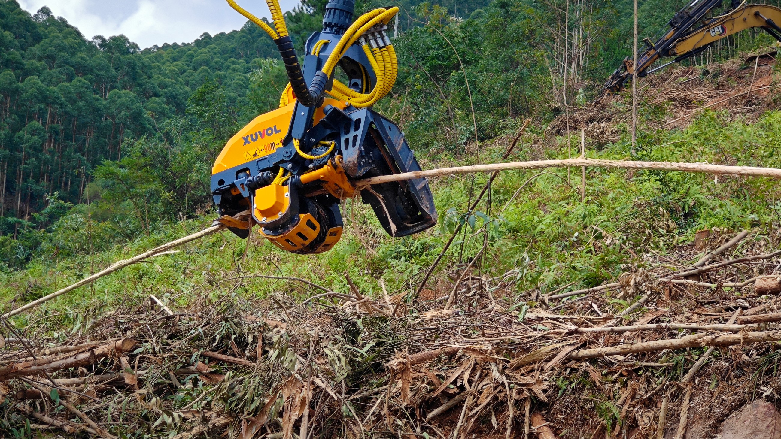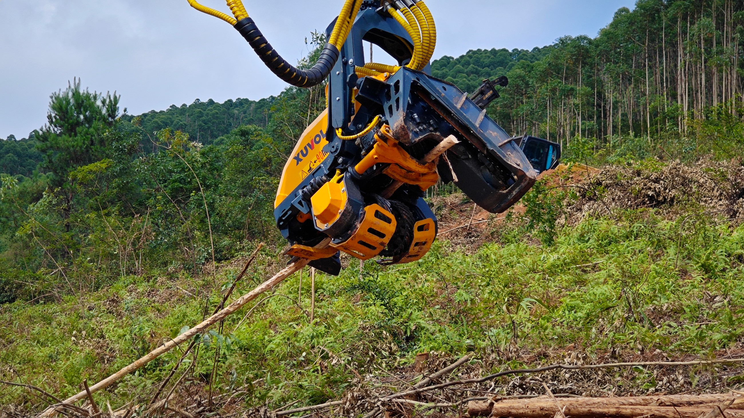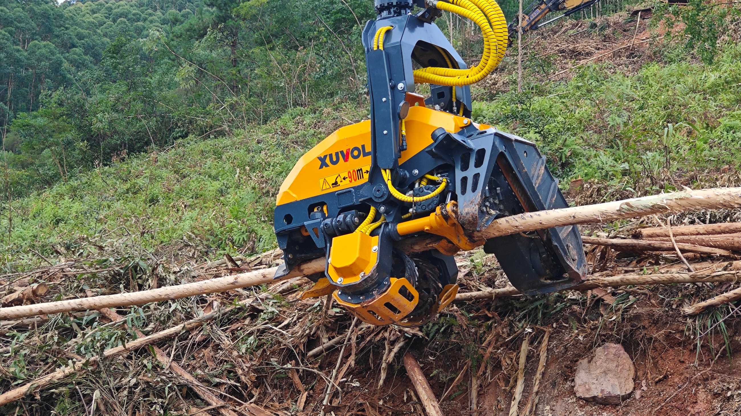 徐沃XVF-500E是一款具有剝樹皮功能的伐木機,專為有木頭剝皮的需求的木頭直徑小于500mm林業(yè)采伐需求設(shè)計的。特殊的剝皮喂料輪在斜角上可進行多切邊操作,從而產(chǎn)生一種螺旋式的樹干傳動并提供質(zhì)量最好、速度最快的剝皮作業(yè),在不進行剝皮作業(yè)時,可以更換常規(guī)喂料輪進行采伐作業(yè)。匹配13-15T挖掘機。